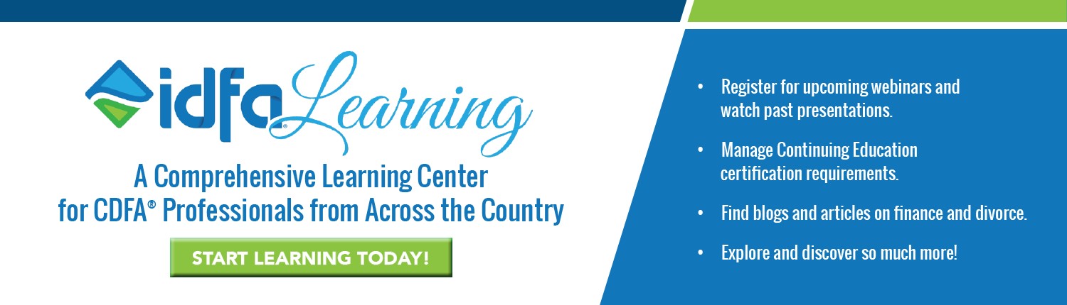 The Institute for Divorce Financial Analysts (IDFA®) is the premier national organization dedicated to the certification, education and promotion of the use of financial professionals in the divorce arena.